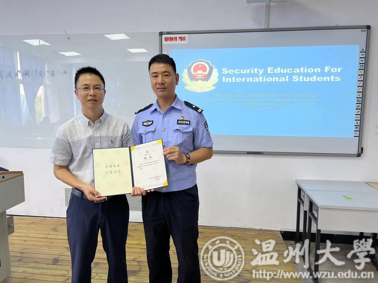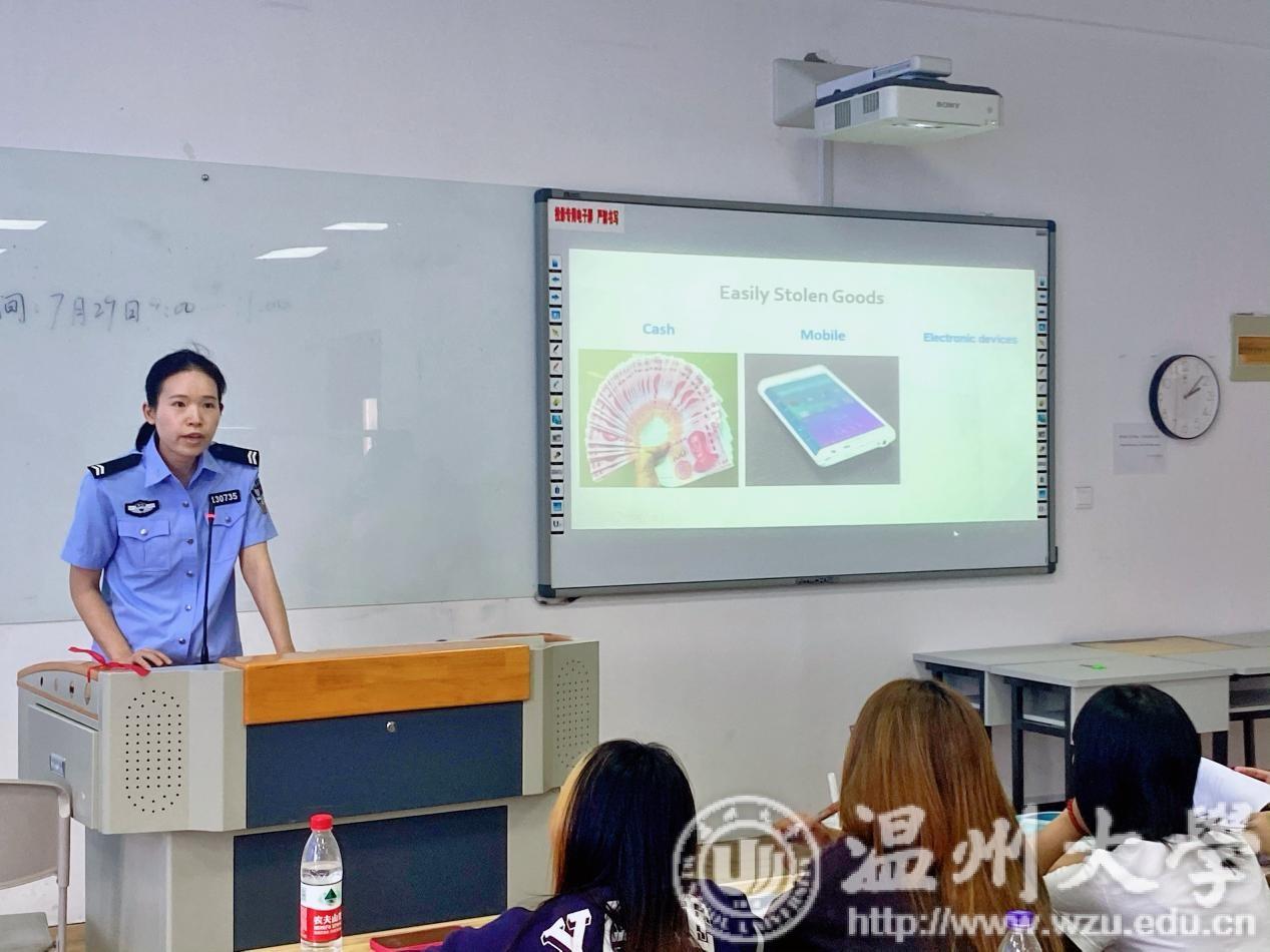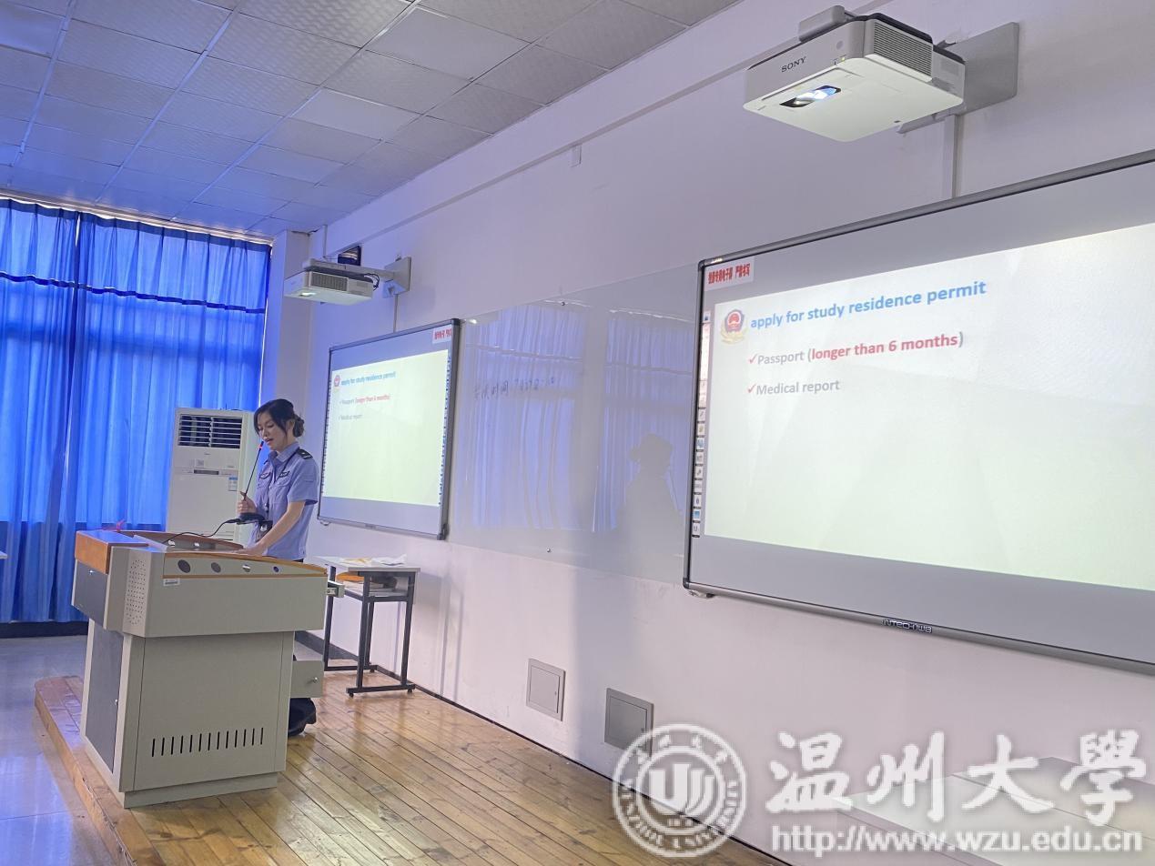 与法同行,安全护航。为切实增强留学生的守法观念和安全意识,9月15日下午,永利集团官网特邀温州市公安局瓯海区分局茶山派出所陈海敏、胡亦舒警官进行中国法律、安全、禁毒、反诈骗讲座,以及瓯海区公安分局出入境张小雯警官进行签证办理讲解。一个个鲜活的典型案例给留学生们敲响遵纪守法的“警钟”,让守法观念和安全意识更加深入人心。