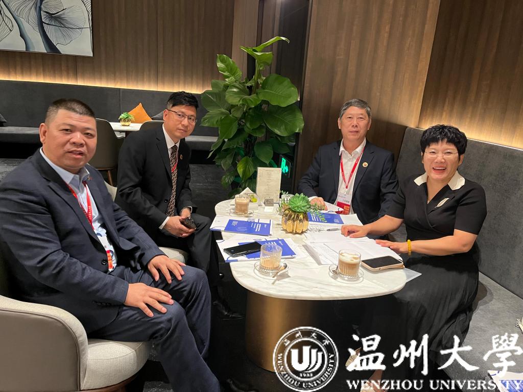 2023年10月14日,世界温州人大会在温州隆重举行。会议间隙,坦桑尼亚浙江商会会长夏赵春、秘鲁浙江总商会执行会长张建英、越南中国商会浙江企业联合会会长缪仁赖、印度尼西亚浙江总商会会长伍晋斌受邀与学院院长宋占美举行合作洽谈交流,3044am永利集团3044noc招生科副科长吴铨铨参与交流。