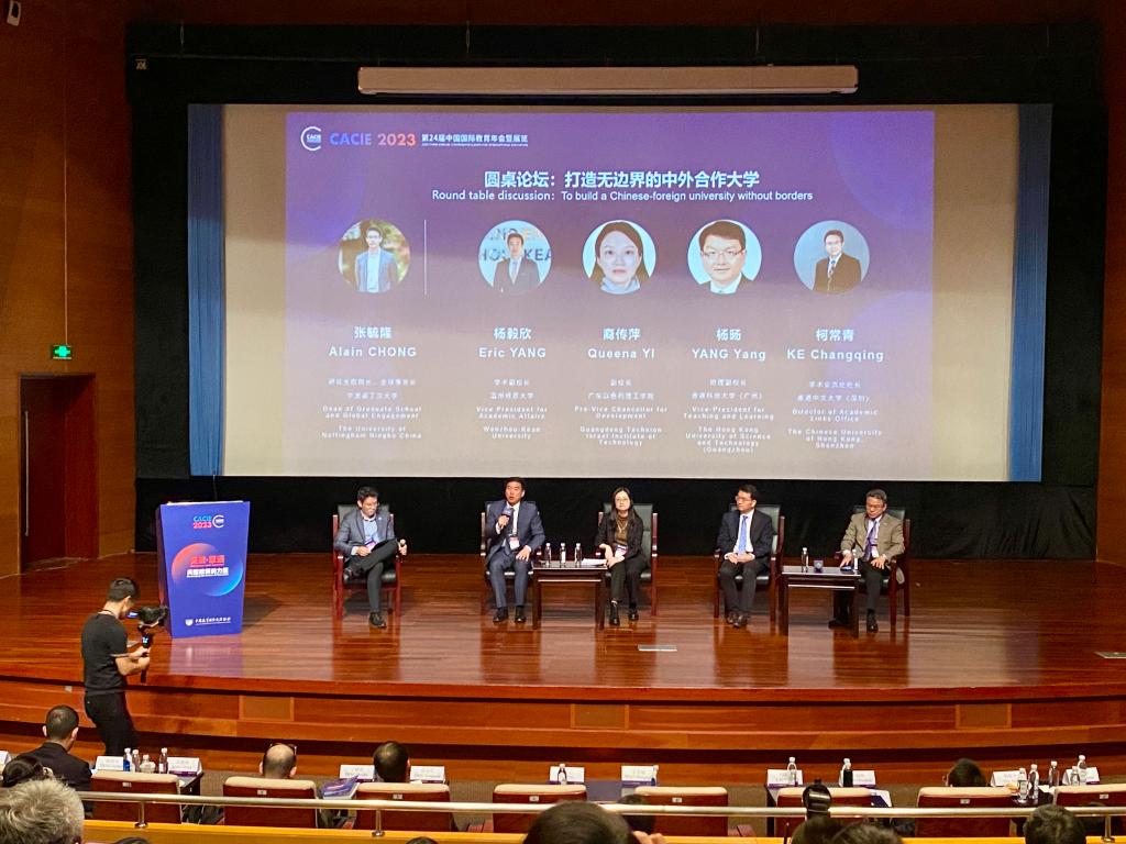 在“启赋未来教育:中外合作办学研讨会”上,来自全国各地的中外合作大学校长们齐聚一堂,围绕“面向未来的办学模式、国际化人才培养、教育数字化转型及打造无边界的中外合作大学”等话题,共同探讨对未来教育的理解和实践。中国教育部国际合作与交流司涉外办学和监管处处长毛冬敏、中国教育国际交流协会副秘书长安延受邀出席研讨会并现场致辞。昆山杜克大学、西交利物浦大学、宁波诺丁汉大学、北师港浸大联合学院、上海纽约大学、深圳北理莫斯科大学、温州肯恩大学、广东以色列理工学院、香港科技大学(广州)及香港中文大学(深圳)等中外合作大学负责人分享了各自机构的做法与特色,并与参会人员充分互动。在问答环节,熊勇副院长围绕后疫情时代外国优质教育资源引进、外籍教师聘用等现实问题请教了现场专家。