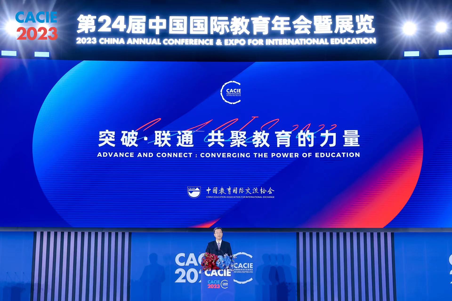 10月26日至28日,由中国教育国际交流协会主办的第24届中国国际教育年会暨展览在北京举行。教育部部长怀进鹏、联合国教科文组织执行局主席塔玛拉•拉斯托瓦茨-夏玛什维利、非洲技术大学与应用型学院协会秘书长扎哈•法勒、韩国教育部副部长张商允出席全体大会开幕式并致辞,中国人民大学党委书记张东刚、澳大利亚大学协会首席执行官卡特里奥娜•杰克逊、美国州立大学与学院协会学术创新与变革副主席特里•布朗、英国商业贸易部首席职业教育专家乔乐杰等中外教育机构与组织代表做主旨发言。中国教育国际交流协会会长刘利民主持开幕式,秘书长郁云峰主持主旨发言。