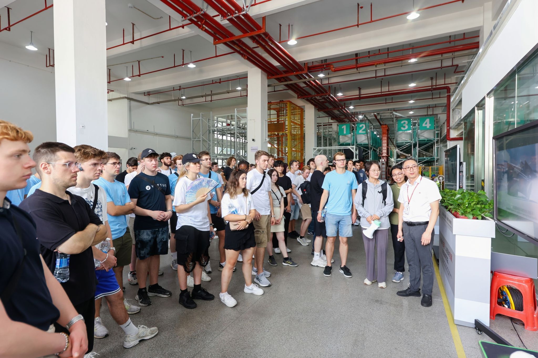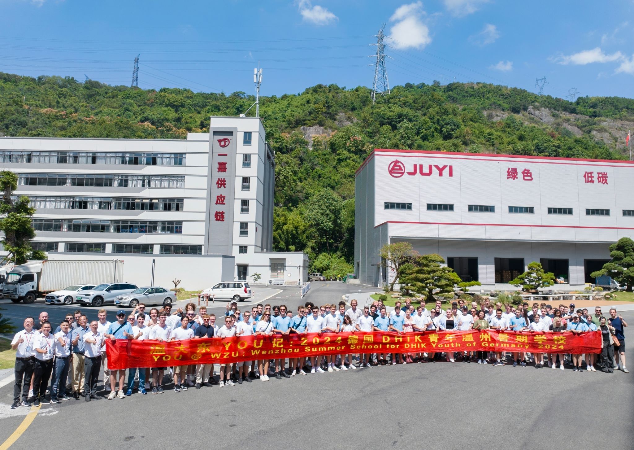 随后,一行人来到了巨一集团。集团工作人员首先详细介绍了企业的发展历程、创新技术以及在国内外市场的影响力,并带领德国青年学生们沉浸式参观了现代化的生产设备和高效有序的生产线。德国青年学生们在这里感受到了中国“智”造的力量,也对温州企业的现代化管理和创新能力有了深刻的认识。