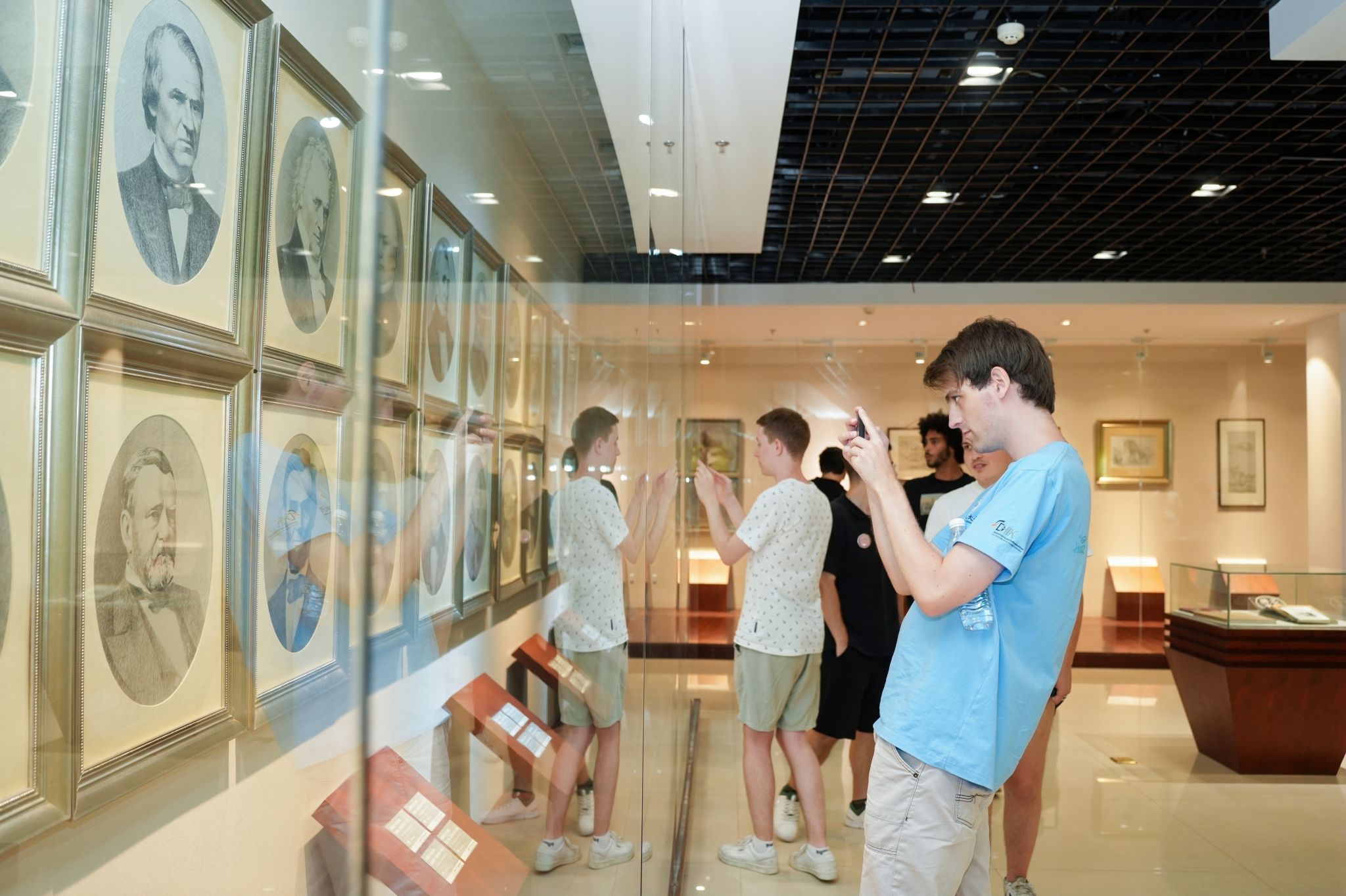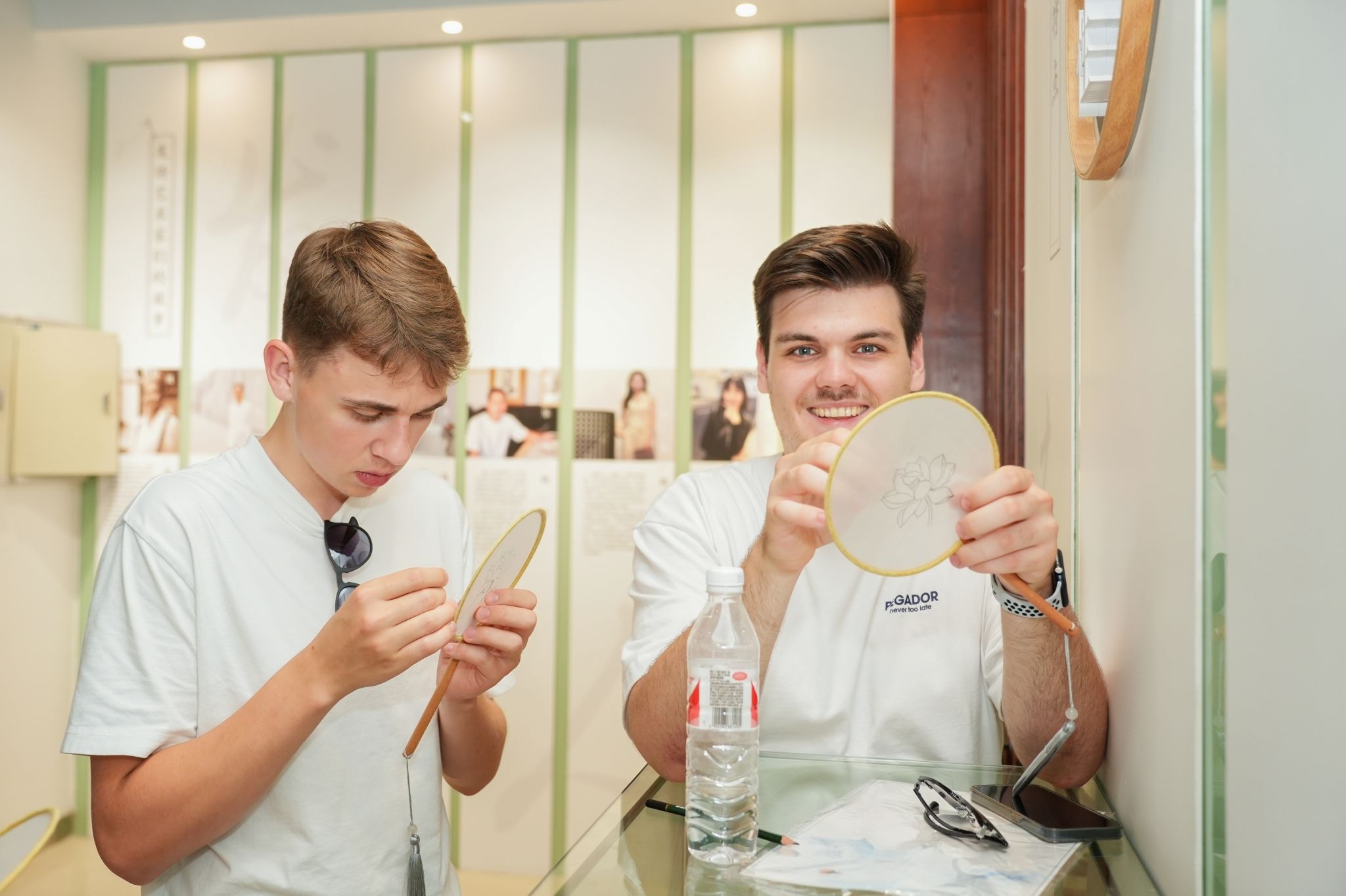 接着,大家来到了3044am永利集团3044noc发绣馆。发绣这种独特的艺术形式让德国青年学生们大为惊叹,馆内陈列着一幅幅精致的发绣作品,发丝在艺术家的巧手下变成了栩栩如生的人物、山水画卷。学生们在参观过程中,认真聆听讲解,了解发绣的历史渊源和制作工艺。随后,他们亲自体验发绣,拿着纤细的发丝,小心翼翼地在绣布上尝试刺绣,尽管手法略显生疏,但他们都沉浸在这一传统艺术的独特魅力之中。
