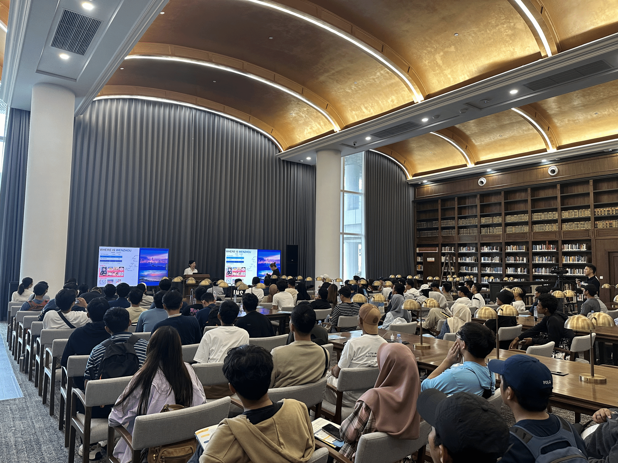 2024年9月25日下午,永利集团官网林爱菊书记带领80名温大青山班语言生学员及联合培养硕士生,走进温州肯恩大学,踏上了文化交流与学术探索的旅程,感受这座融合中美教育精华的高等学府的独特魅力。此次参观不仅加深了印尼学员对中国的理解,也激发了印尼学员努力学习中文的动力。