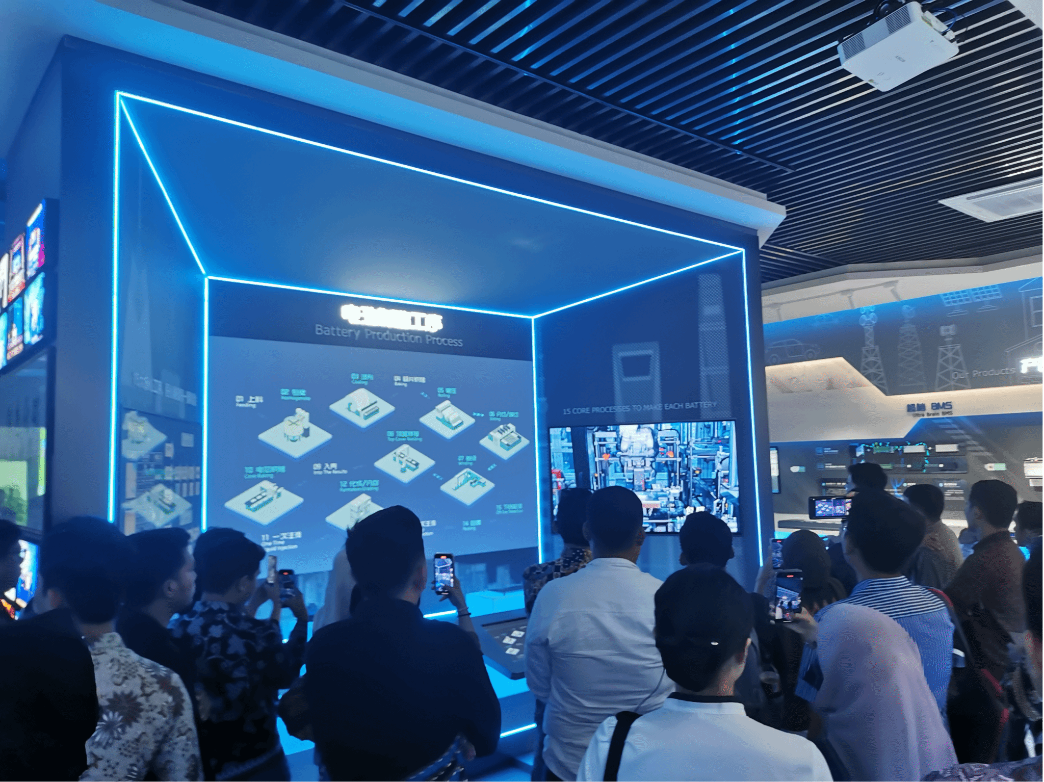 随后,一行人前往瑞浦兰钧能源股份有限公司。瑞浦兰钧是青山控股在新能源领域的重要布局,专注于锂离子电池的研发、生产和销售。在这里,学生们近距离参观了现代化的生产线,听取了技术人员关于电池生产工艺、性能测试及质量控制等方面的详细介绍。通过实地观摩,学生们对新能源产业的发展现状和前景有了更加直观的认识。