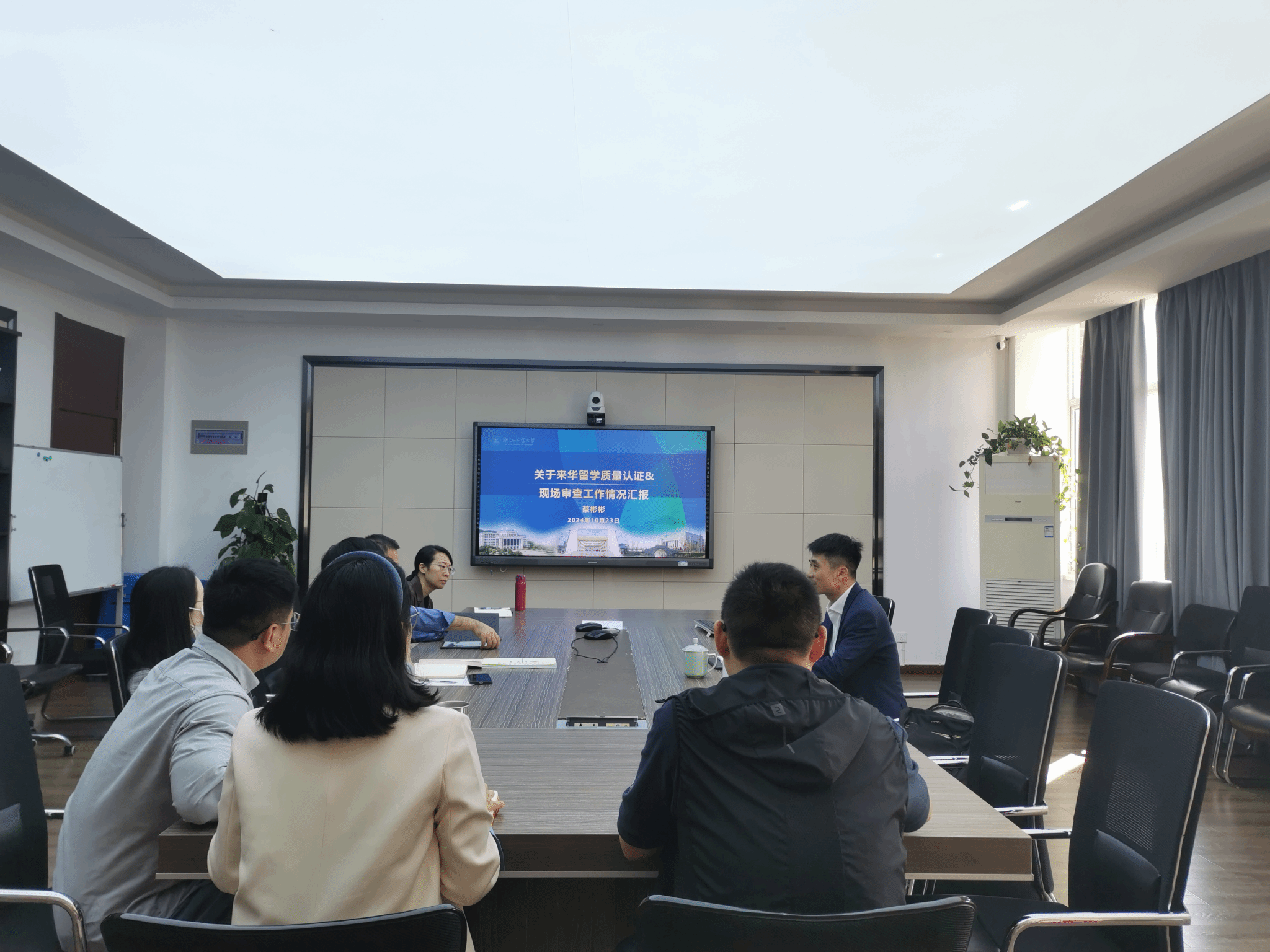 2024年10月23日,3044am永利集团3044noc邀请浙江工业大学国际交流与合作处副处长蔡彬彬来校指导来华留学高等教育质量认证工作。学院院长夏远志、书记林爱菊、副院长郑婷,及学院认证工作相关人员参加交流。