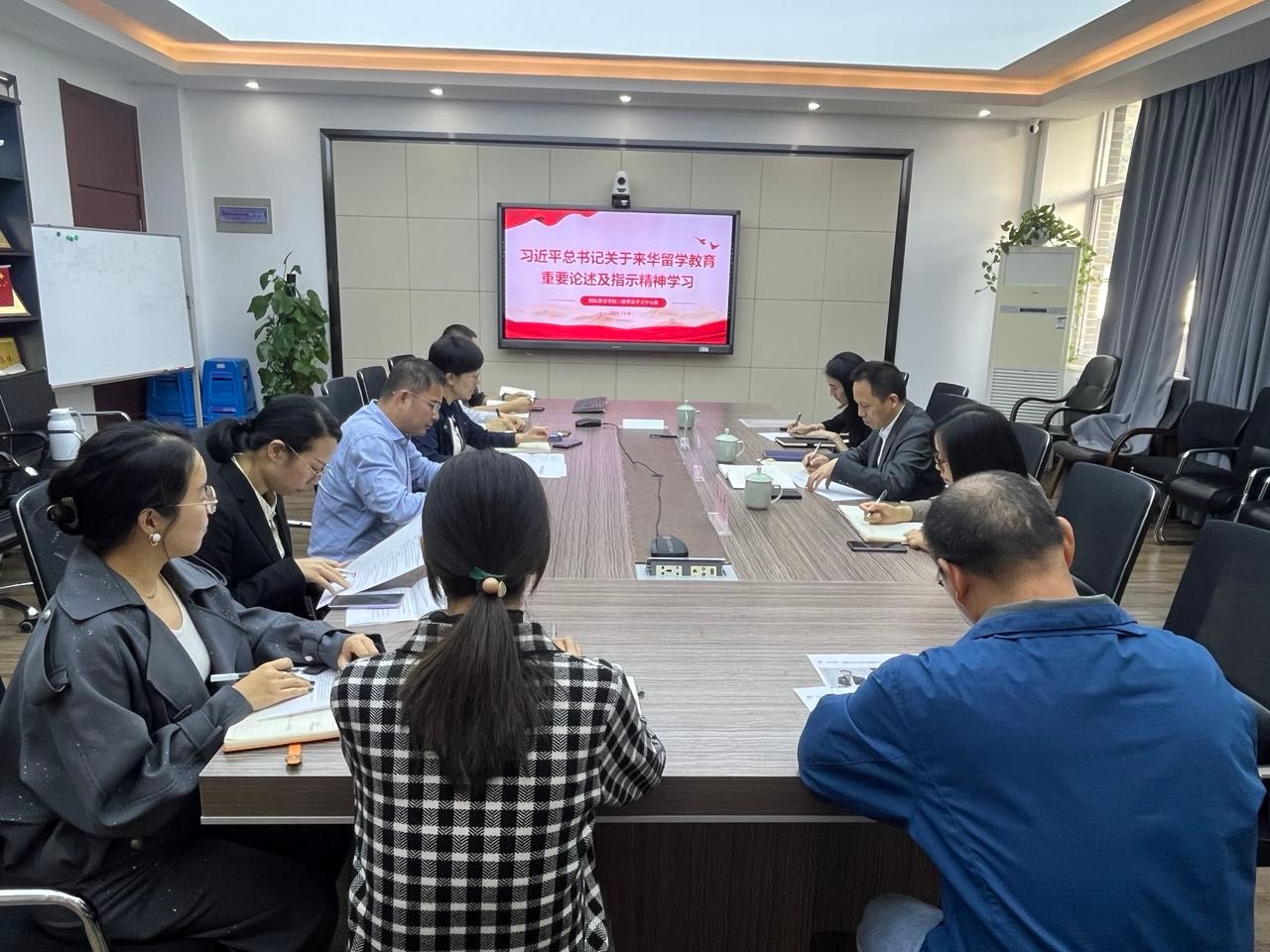 学院副院长郑婷、副书记丁强、各科室负责人等围绕重要论述内容,结合工作实际,分别作了交流发言。大家一致表示要切实将贯彻落实习近平总书记关于来华留学教育及教育对外开放的重要讲话精神与教学、管理等工作实际结合起来,为学院发展作出更大贡献。