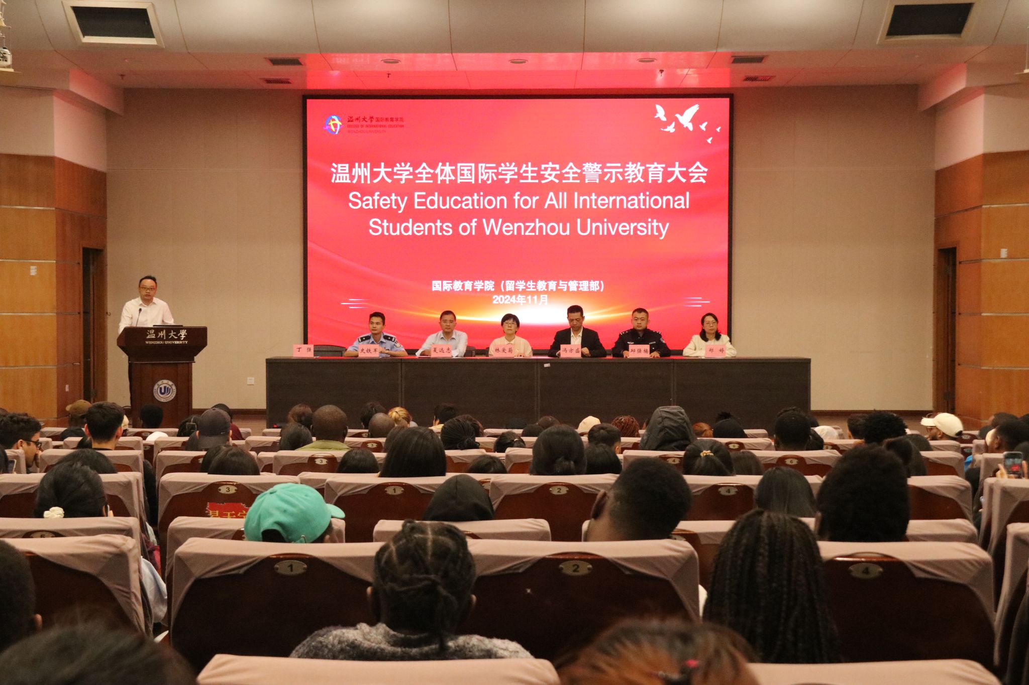 安全是学校发展稳定的基石,是学生学习生活的基本保障。通过本次安全教育大会,希望全体国际学生今后一定时刻紧绷安全这根弦,严格遵守各项安全规定,以实际行动践行安全责任,有效提高自身安全防范能力,顺利度过美好的留学生活。