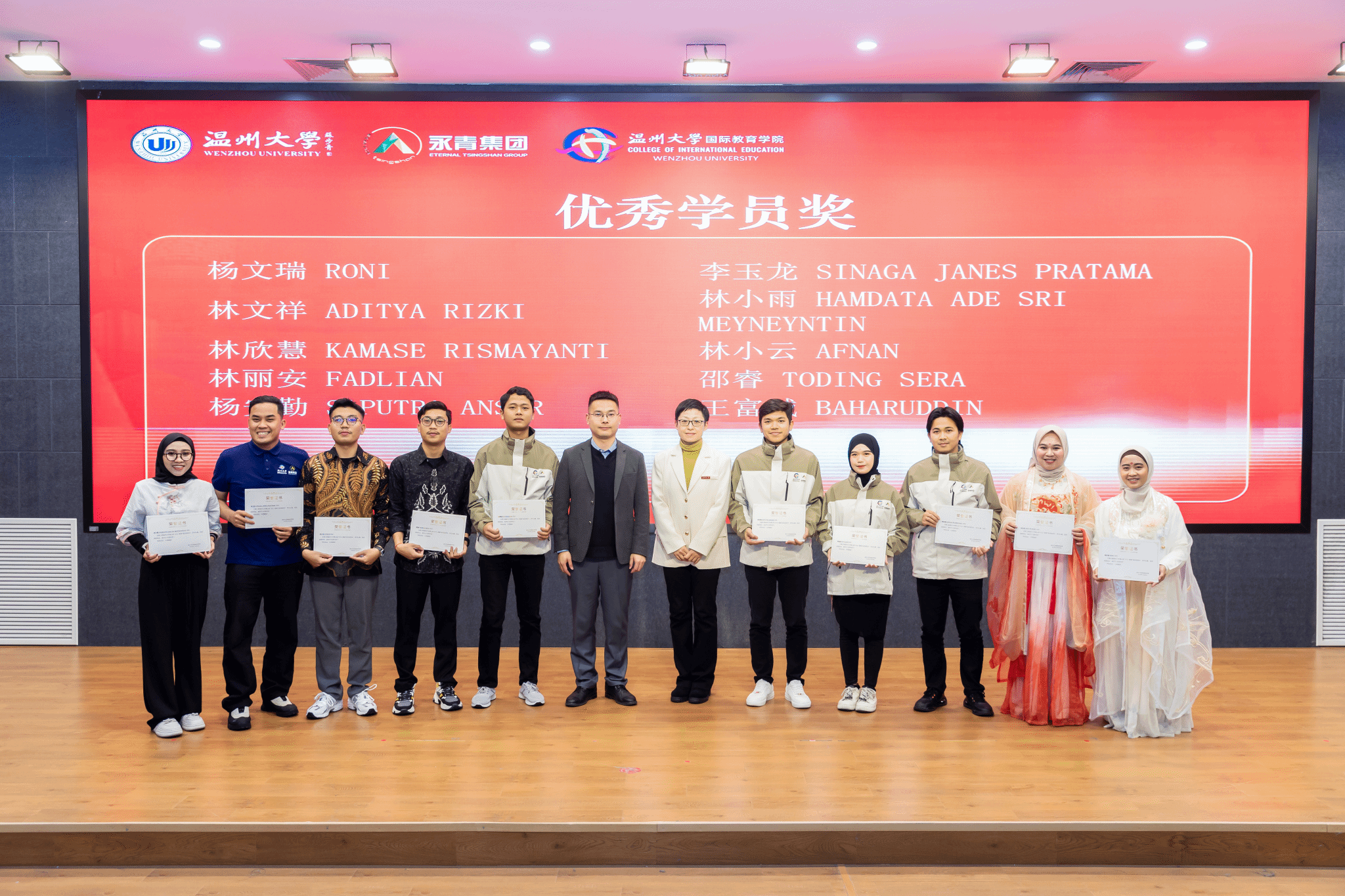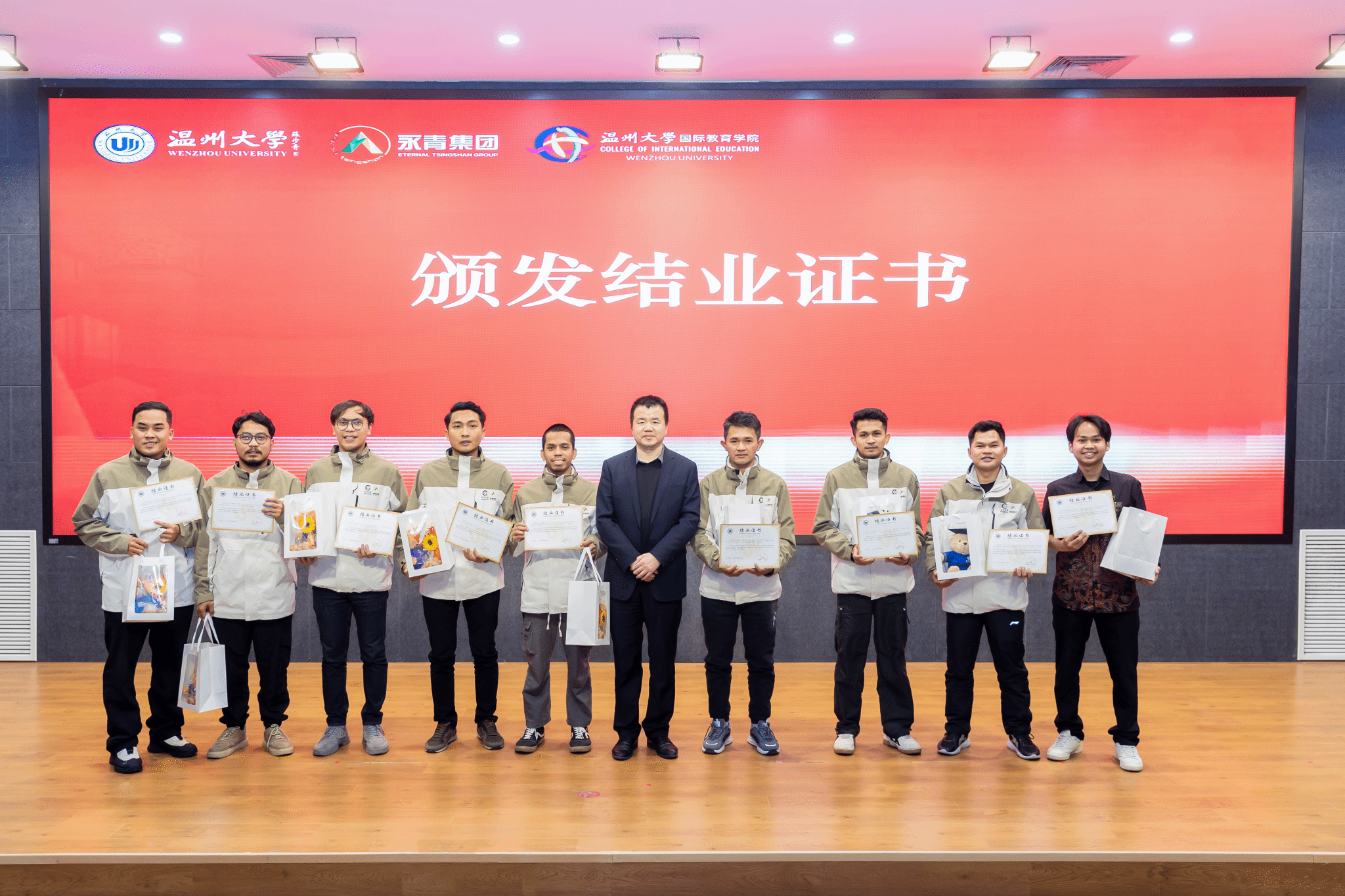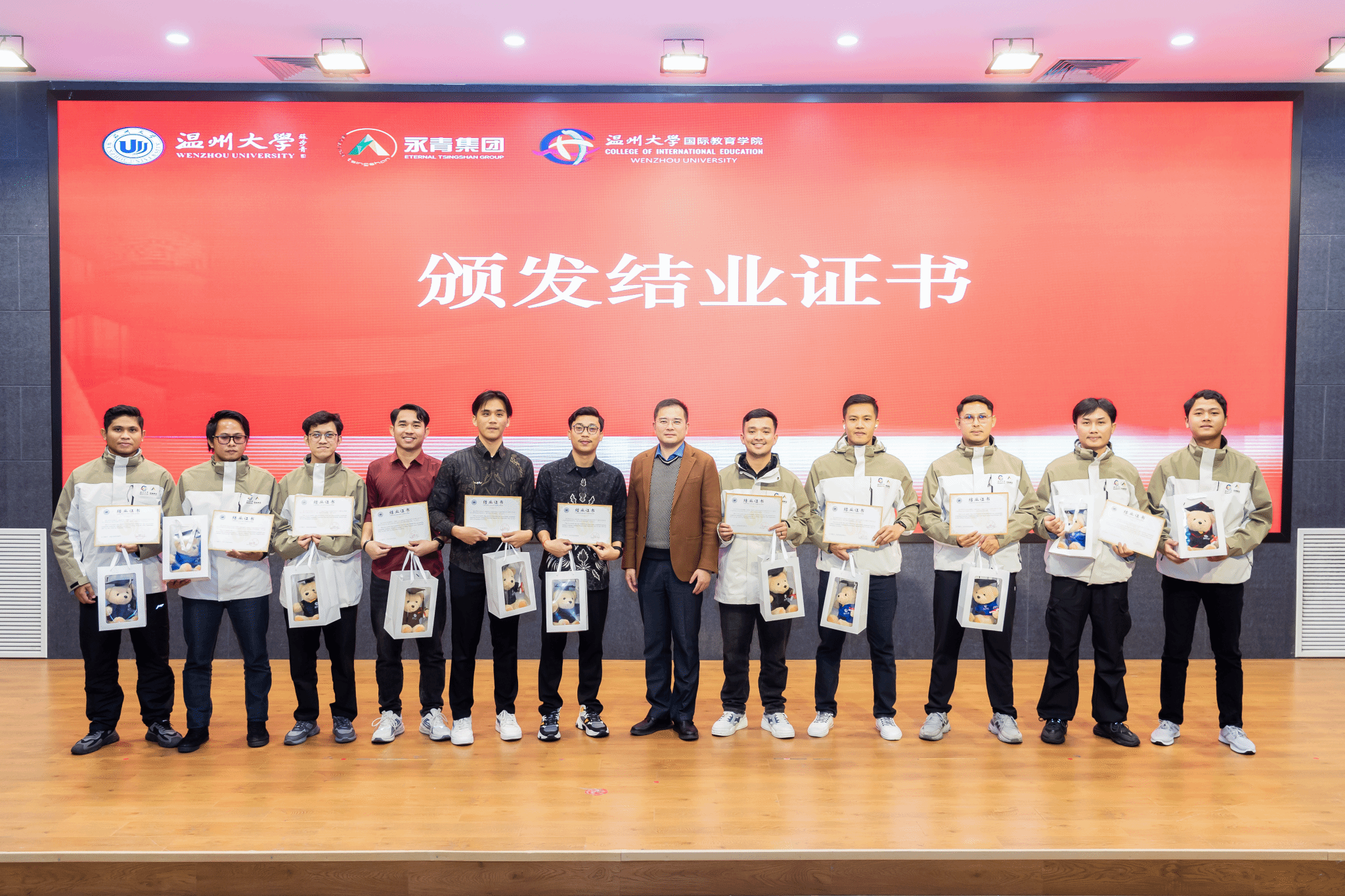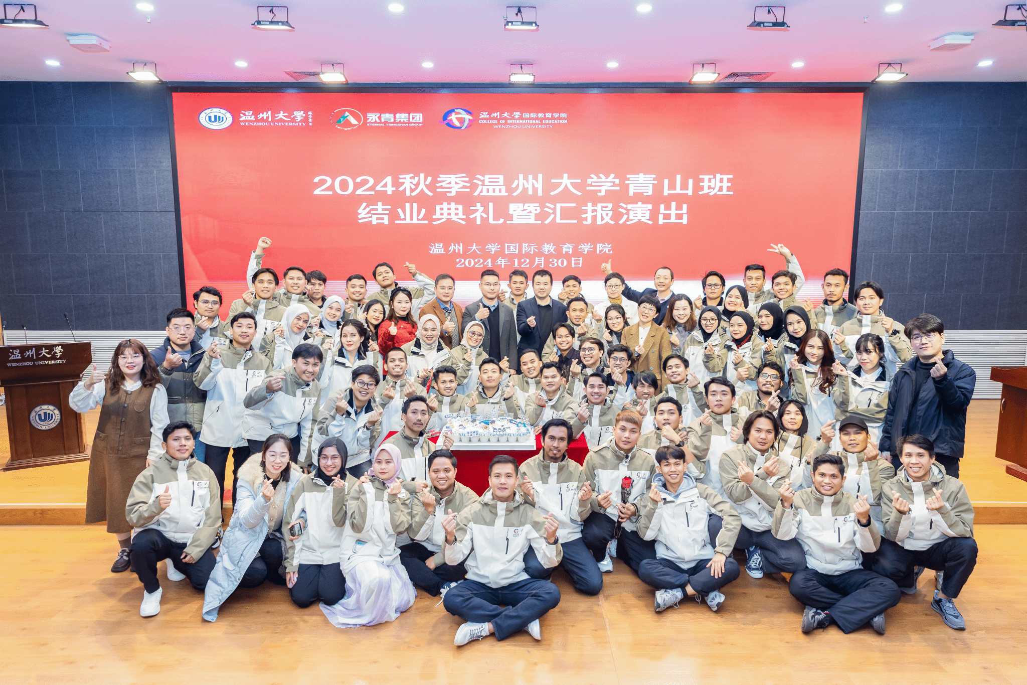 12月30日下午,第三期“温大青山班”结业典礼在3044am永利集团3044noc南校区岩松堂步青厅举行。青山实业永青集团福建代表处人力资源部经理王胤、综合管理部副经理朱振涛、人事专员张杨、3044am永利集团3044noc国际交流与合作处处长陈慧、3044am永利集团3044noc党支部书记林爱菊、院长夏远志、国际交流与合作处副处长熊勇以及青山班全体任课老师、班主任、管理人员和学员们共同出席典礼。结业典礼由青山班学员林文祥和林小雨担任主持人。