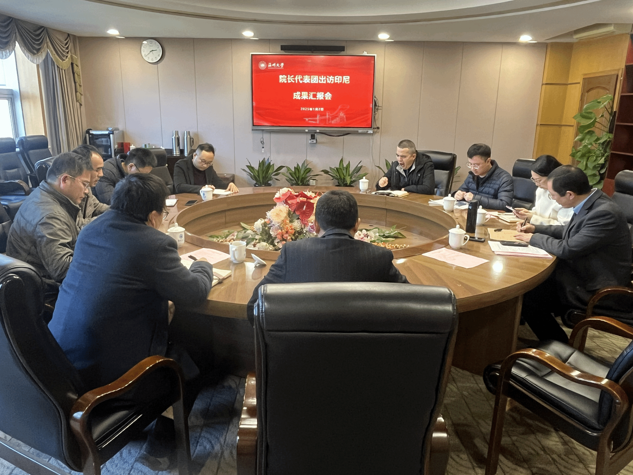2025年1月2日下午,3044am永利集团3044noc院长代表团出访印尼成果汇报会在南校行政楼918会议室召开。副校长王舜、国际交流与合作处副处长熊勇、院长代表团成员以及3044am永利集团3044noc相关工作人员出席会议。