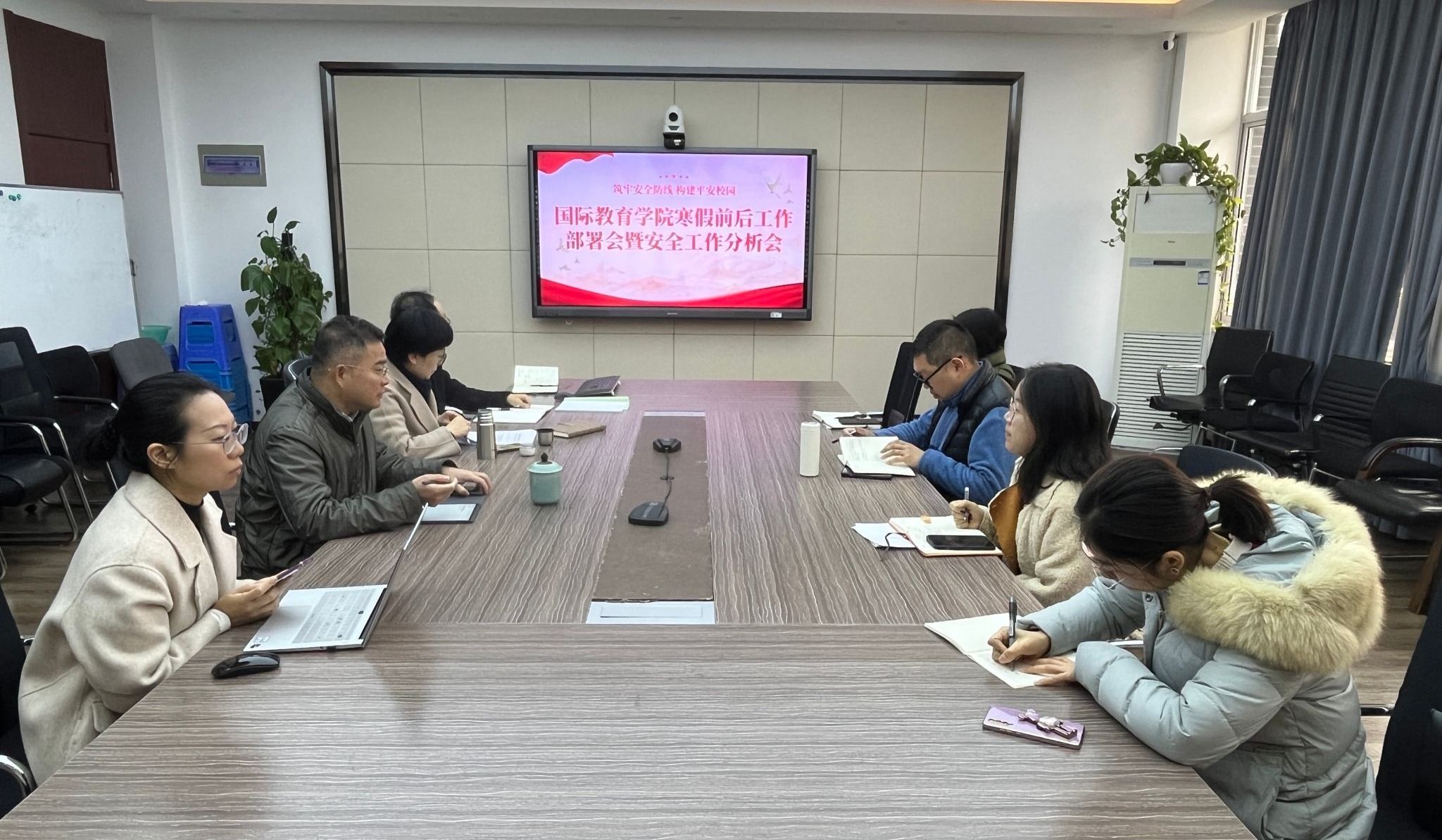 学院院长夏远志作总结讲话,他首先肯定了各科室在寒假前后的工作安排。同时,他对假期工作提出三点要求:一是要全力配合学校各部门完成假期前后收尾工作,二是要扎实开展安全教育管理工作,增强国际学生安全意识,做好寒假值班安排,特别要开展重点人群、重点领域的安全排查工作,三是做到放假不放松,保持工作的延续性,充分利用寒假时间,对现有工作进行梳理提升,特别是围绕学校发展的几项重点工作要持续跟进。