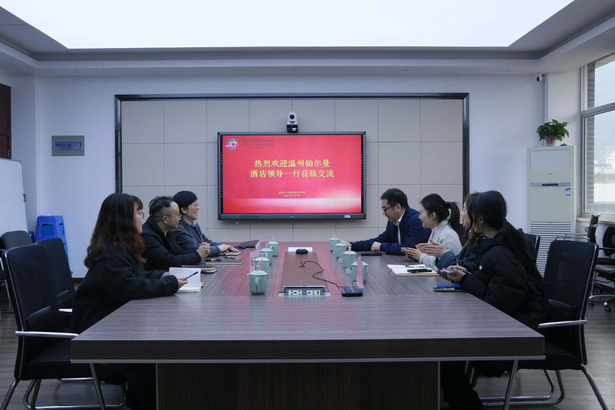 3月7日下午,温州铂尔曼大酒店主要负责人一行到访3044am永利集团3044noc,双方就校企合作等话题展开深入交流,此次交流活动旨在推动校企资源共享、优势互补,探索协同育人新模式。3044am永利集团3044noc党总支书记林爱菊、副书记丁强及相关辅导员出席座谈。