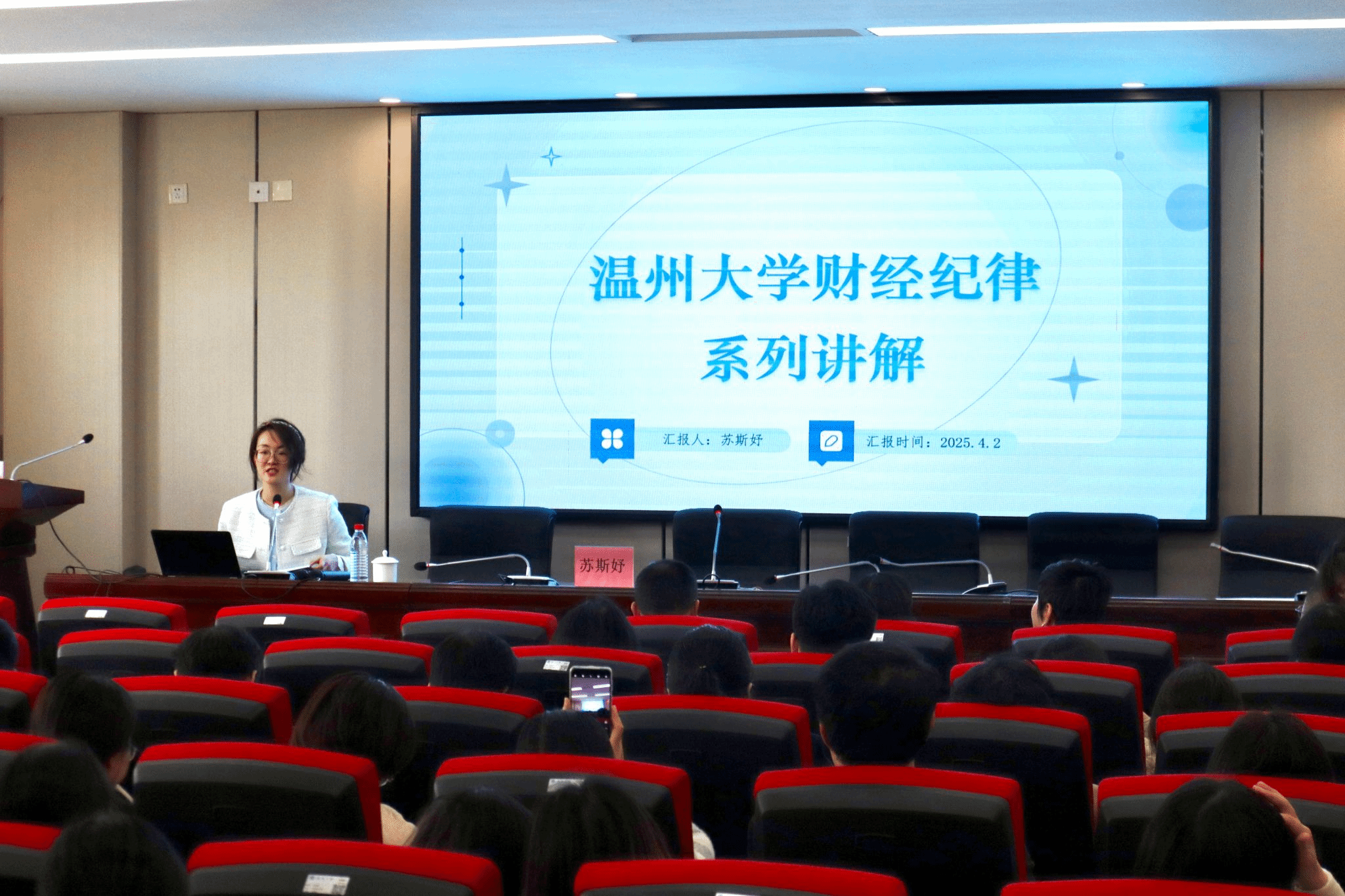 会上,苏斯妤老师详细介绍了经费使用原则、报销基本常识、经费支出常见问题及计财处内部组织架构,并结合校内外经费使用典型案例为教师们开展警示教育。
