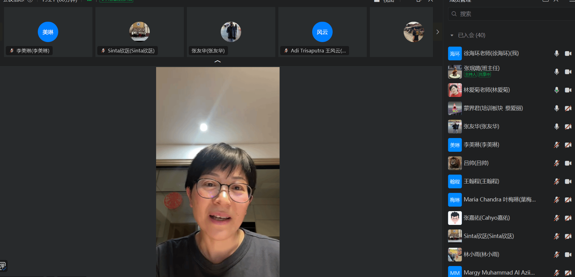 班主任张珉璐老师在开班仪式上,向学员们详细介绍了课程设置及学习要求。此次课程着重聚焦高阶汉语应用与专业翻译技能两大关键板块,深入贴合印尼青山公司的实际业务场景与员工工作需求,精心定制教学内容。在教学过程中,将借助多样化的线上互动形式,如实时答疑、小组讨论等,充分调动学员的学习积极性;同时,布置针对性强的作业,通过作业完成情况检验学员对知识的掌握程度,以此多维度确保学习效果,助力学员切实提升高阶汉语能力。