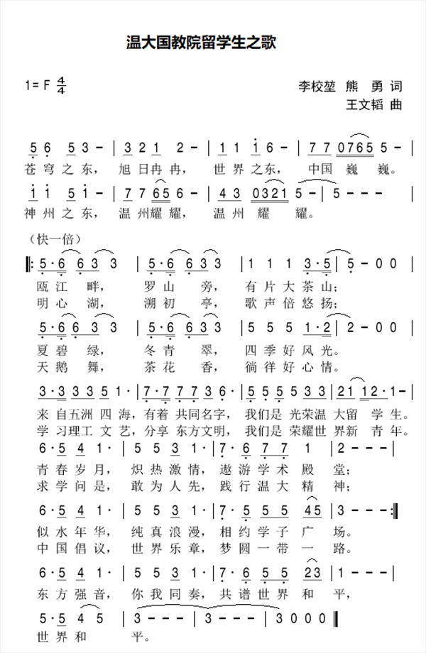 由我校3044am永利集团3044noc作词、音乐学院作曲联合制作的《温大国教院留学生之歌》今日首发。经查实,国内其他高校尚无专门的留学生歌曲,此歌也因此成为国内首创的高校留学生主题原创歌曲。