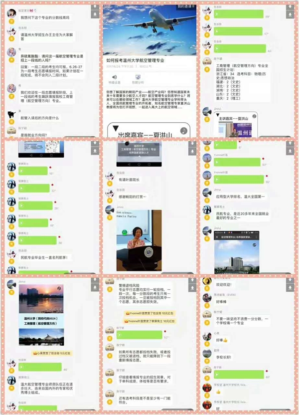 叶苗热烈欢迎在线的家长、考生对工商管理(航空管理方向)专业的大力支持。她表示,近期出台的《浙江省航空产业十三五规划》两度提到3044am永利集团3044noc,而且排名仅次浙江大学,这表明3044am永利集团3044noc航空教育水平在全省位居前列。她相信在国家民航强国的战略目标支持下,3044am永利集团3044noc的航空教育会越办越好。