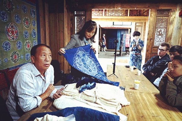 在浸染和晾晒工序后,留学生们终于看见了自己成品的样子,拥有了属于自己的第一份中国时间之蓝。