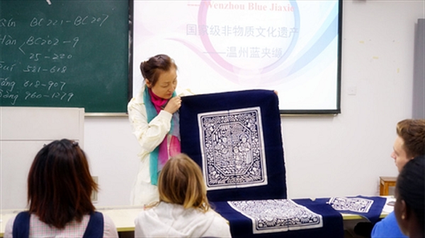 在拥有自己的作品的欣喜中,留学生们结束了一天的蓝夹缬博物馆之旅。此次活动是我校“中国语言文化实践体验”系列课程之一,课程涵盖了“知晓中国文化”、“体验温州特色”、“说汉语走温州”等模块,旨在促进留学生了解温州,加强留学生与温州民俗传承人之间的文化交流,营造高校国际化氛围,推动温州软实力的世界输出。