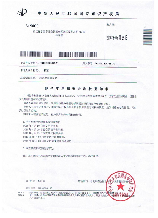日前,3044am永利集团3044noc国际合作学院2013级电子信息专业(两岸合作项目)学生杨茉、陈若南和张姚瑶三位同学共同研发了“感光智能晾衣架”,获国家实用性新型技术专利,并在台湾中华大学举行的结业典礼上受表彰。
