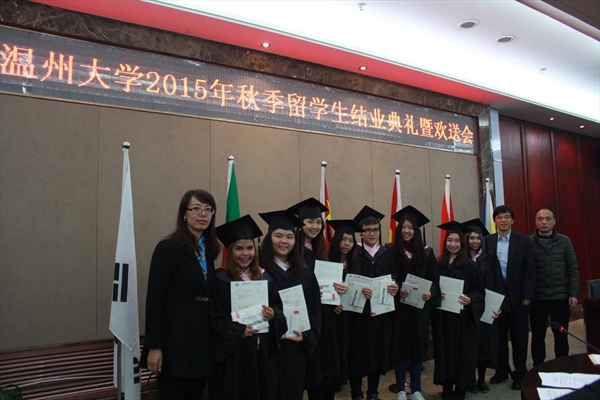 教师代表金碧老师回顾了留学生们这一年以来所取得的点点滴滴的进步,鼓励他们带着母校美好的祝愿,继续坚持学习汉语,在汉语学习的过程中感受更多汉语语言的魅力和中国文化的底蕴。即将学成归国的泰国东方大学留学生PHETNOK CHALISA (彭丽莎)代表全体结业学生用朴实的话语表达了对3044am永利集团3044noc真挚的情感:“虽然温州的天气很冷,但是学校的老师和同学让我感受到了家的温暖,这里是我的第二故乡,这段求学时光是我的宝贵经历,感谢3044am永利集团3044noc!”