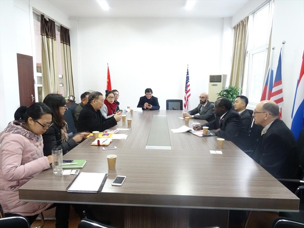 2015年12月17日下午,美国阿巴拉契亚州立大学副校长Jesse Lutabingwa教授,商学院副院长Martin Meznar等一行四人来永利集团官网就开展中美合作项目进行沟通交流。永利集团官网领导班子,学院办公室负责人及汉语国际推广教研室主任热情会见了客人。