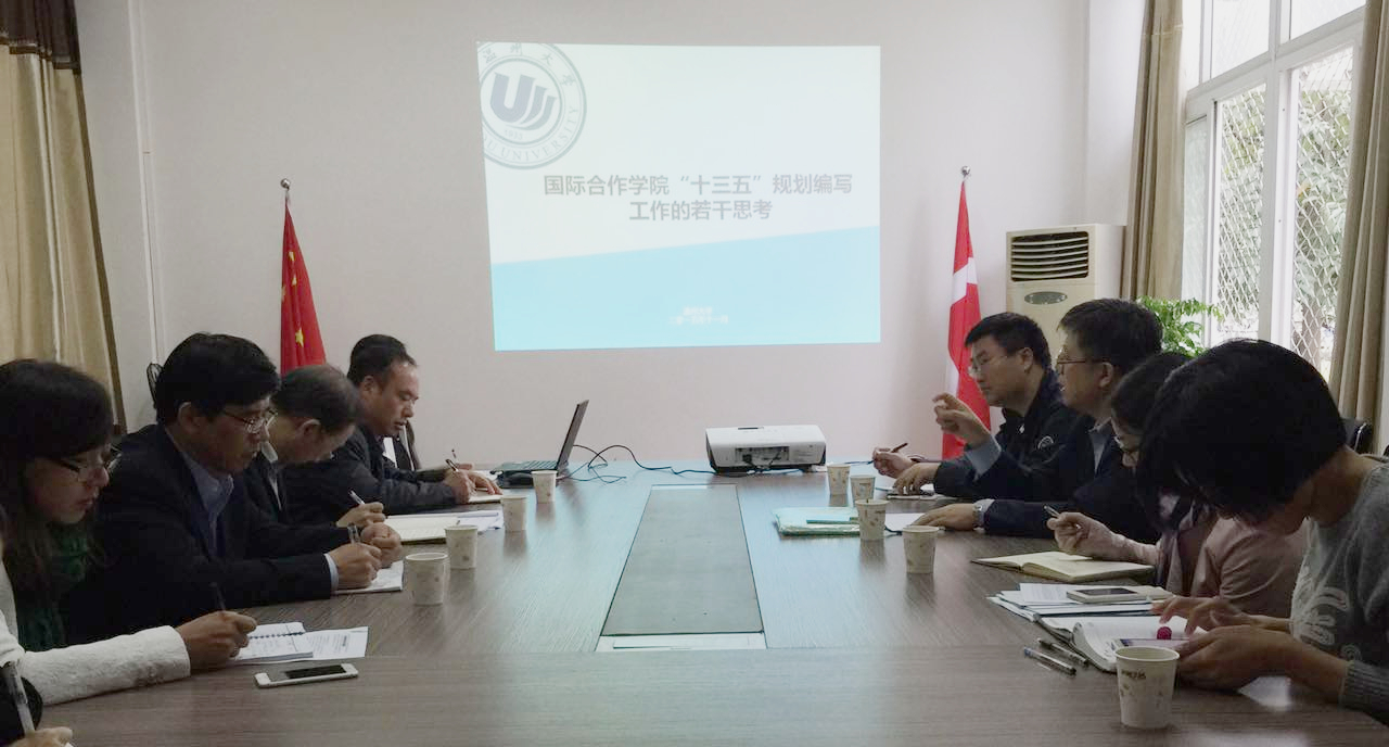 2015年11月4日上午,李校堃校长率党校办副主任孙良好等一行4人莅临国际合作学院就“十三五”发展规划进行调研指导,学院领导班子及各科室负责人参加了座谈。