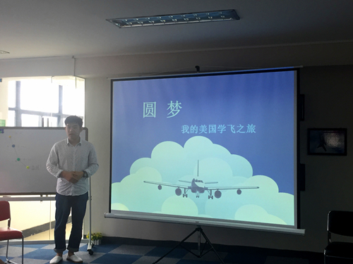 图为FAA地面教官苏中元介绍赴美学习课程情况
