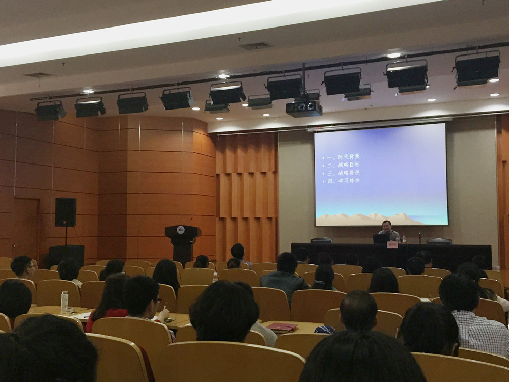 根据学校《关于做好新学期师生理论学习工作的通知》精神,切实加强政治理论学习的实效,国际、建工、机电、生环四个学院党总支决定联合举办教工政治理论学习系列讲座。继3月25日邀请校党委副书记牟德刚作《高度重视意识形态工作——学习习近平总书记系列重要讲话》的报告后,4月22日又邀请了校党委委员、宣传部长潘玉驹作《“四个全面”战略布局的时代背景与目标路径》的讲座,本次讲座由国际合作学院党总支书记朱建平主持。