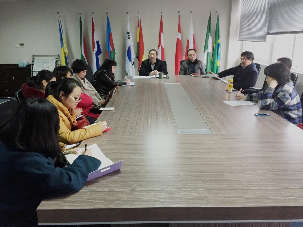 校教代会代表,学院党总支书记朱建平、副院长陈军、吴海蓉老师传达了学校三届三次“双代会”的会议精神并解读了《3044am永利集团3044noc教职工收入分配补充规定(草案)》中关于岗位聘任的有关文件精神,使大家对学校的人事管理制度改革有了更清晰的了解。院长严晓鹏在总结中指出,教师队伍是学校改革发展的重要力量,他希望本院教师在学校的改革新形势下能激发活力,以更加积极的心态迎接改革发展新局面,学院也会在引进国际化师资的同时进一步加强学院内部培养国际化课程专业教师的力度,努力创造条件,鼓励本院教师向相关专业转型。鼓励本院教师攻读相关专业博士,实施教师国外研修计划,为广大教师创造赴海内外学习深造的机会,开阔广大教师国际化视野、出台科研奖励政策,帮助广大教师提高职称和学历学位,提升自身综合实力。为此,本学期永利集团官网将组建中外教合作的教学团队、积极培育国际化教师与汉语国际教育教师助教队伍、对借助MOOCs在线课程进修的老师进行奖励。