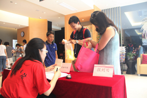 报到当天,营地前迎来了不少熟悉的身影——多次参加优秀华裔青年营的营员黄志鹏一进报到大厅就送给指导老师一个热情的拥抱;往届营长王品淼也同指导老师亲切地交谈。首次参加优秀华裔青年营的营员在简单交流后也融入了这一新的大家庭。随后,营员们在完成一系列的报到手续后,领取了营服、营员手册、教材等,入住酒店休息。