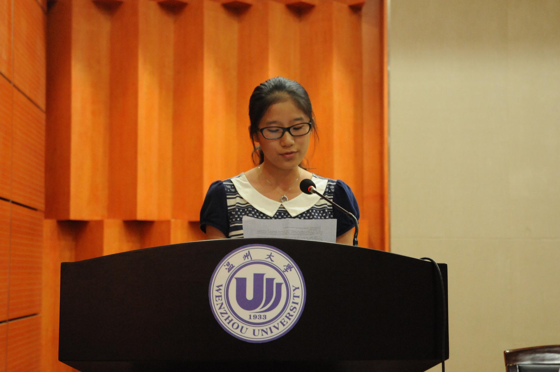 随后,国际合作学院教师代表Nora Hayward (外籍教师)结合自己所授课程与同学们在学习态度、学习方法等方面做了真诚的交流。最后,2012级老生代表李冬、2013级新生代表单静怡也分别用流利的英语进行了发言。