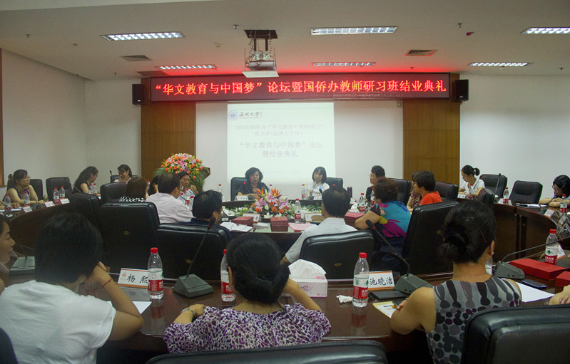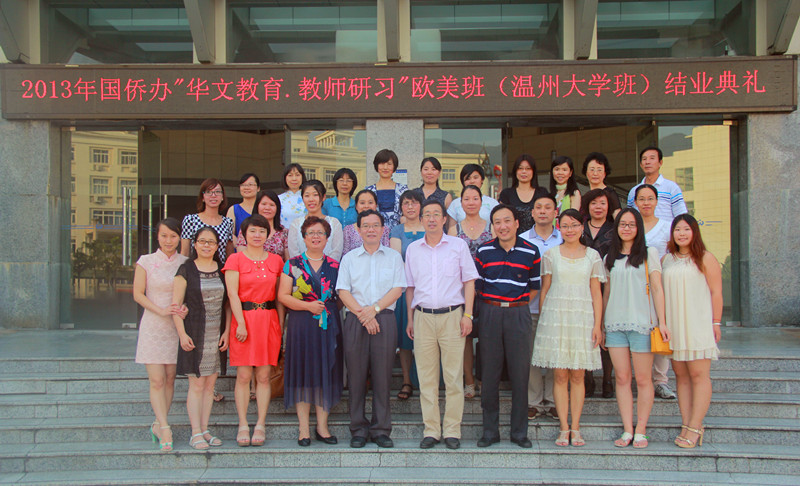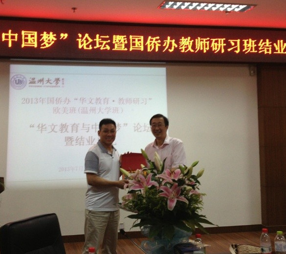 7月24日下午,3044am永利集团3044noc在茶山南校区岩松堂展示厅隆重举行“华文教育与中国梦”论坛暨2013年“华文教育•教师研习”欧美班结业典礼。浙江省人民政府侨务办公室副主任徐高春,文宣处处长王云奇,温州市侨办副主任许捷,党组成员、文宣处处长叶斌斌,3044am永利集团3044noc国际合作学院院长严晓鹏等领导出席了本次论坛暨结业典礼。