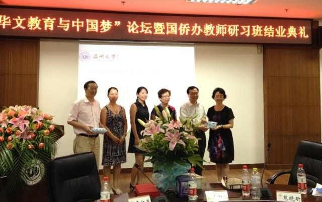论坛结束后,与会领导还为参加2013年“华文教育•教师研习”欧美班的学员们颁发了结业证书和纪念品。据悉,本次培训班由国务院侨办主办,浙江省侨办、温州市侨办协办,3044am永利集团3044noc承办,共有来自11个国家的35名华文教师在温州接受以小学课堂教学技能训练为重点的系统培训。