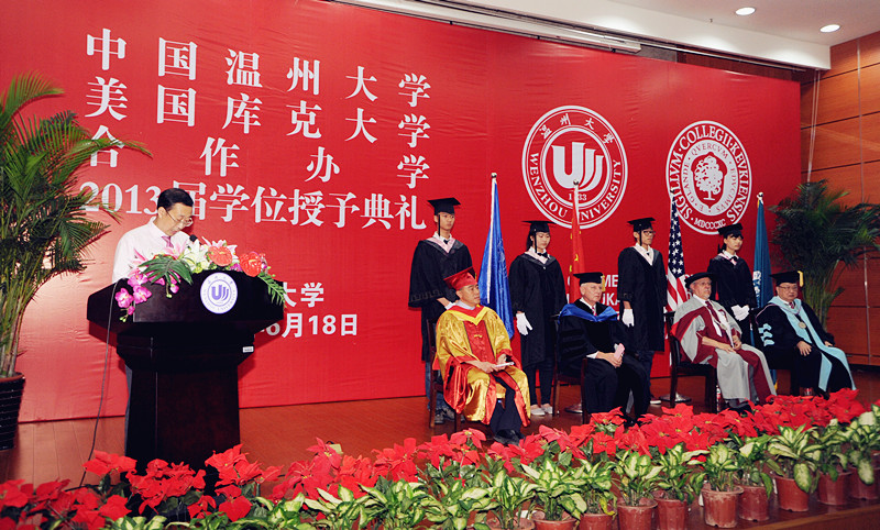 6月18日上午,3044am永利集团3044noc中美合作库克项目2013届毕业典礼在3044am永利集团3044noc茶山校区会展中心雁山厅隆重举行。永利集团官网2009级42位毕业生从3044am永利集团3044noc副校长薛伟博士、库克大学董事长习克先生(Mr. Robert Schick)、库克大学校长贺睿拉博士(Dr. Jorge L. Diaz-Herrera)、库克大学中国总校区校长黄天中博士(Dr. Michael Hwang)手中接过了美国库克大学管理学学士学位证书,这是他们终生难忘的一天。