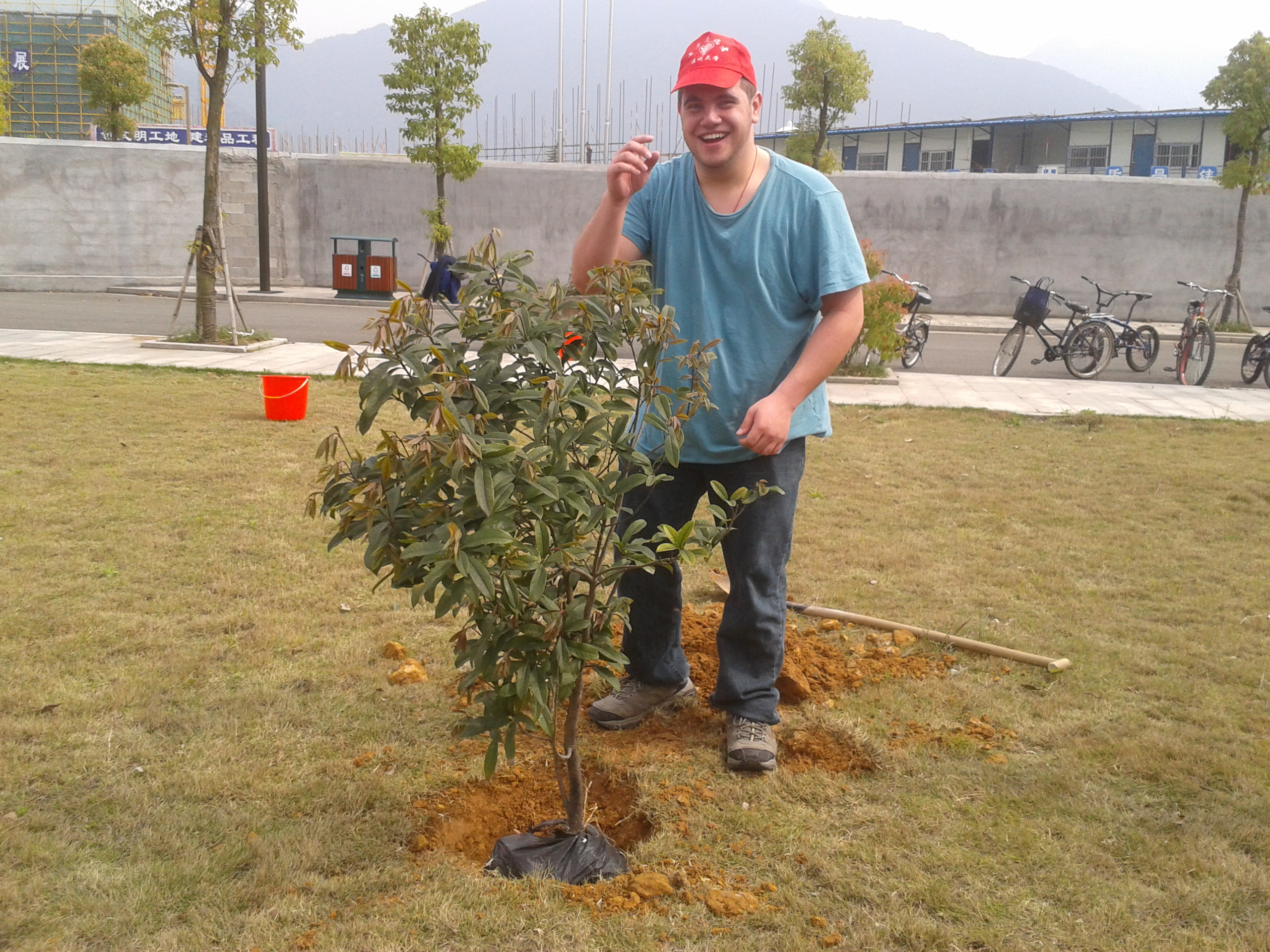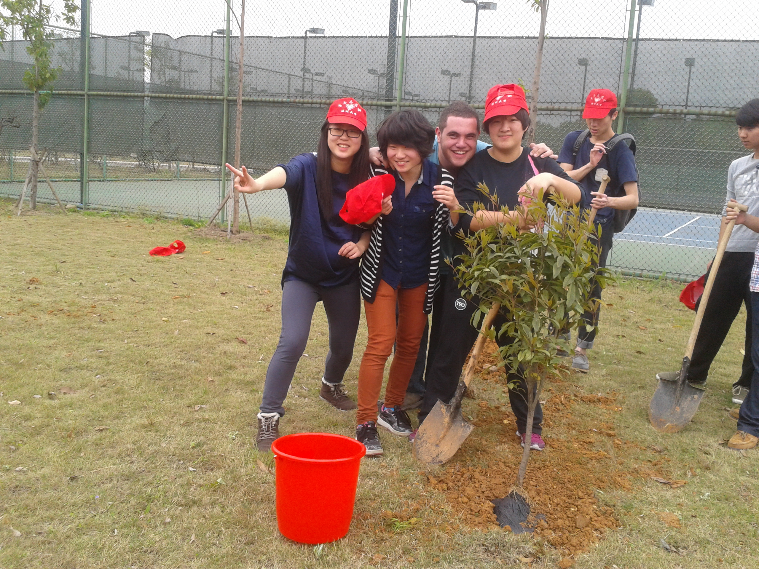 为进一步美化校园环境,丰富广大学生的课外活动,增强大学生保护自然的意识,永利集团官网15名中外志愿者组织了一次植树活动。