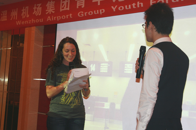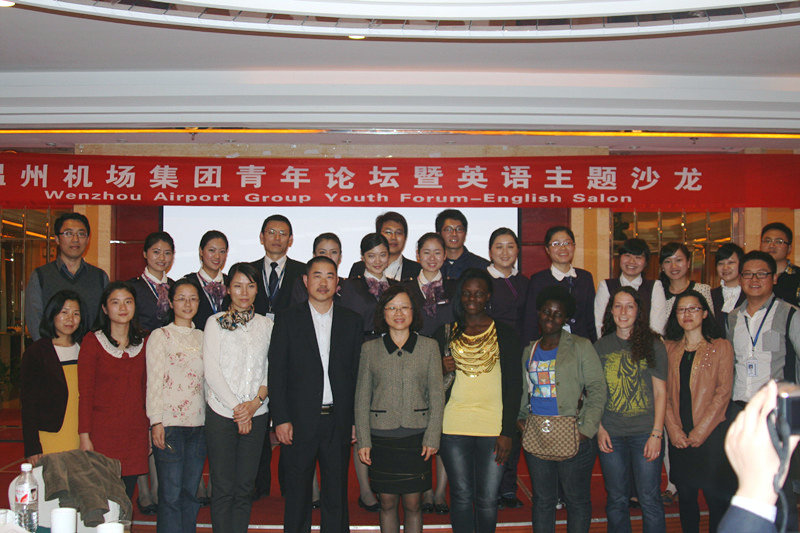 2012年11月13日,温州机场集团青年论坛暨英语主题沙龙活动在温州机场会议厅举行,永利集团官网美国留学生Alison,坦桑尼亚留学生Jacob,加纳留学生Akosua应邀参加,参加沙龙的还有外国语学院朱晓申副院长。