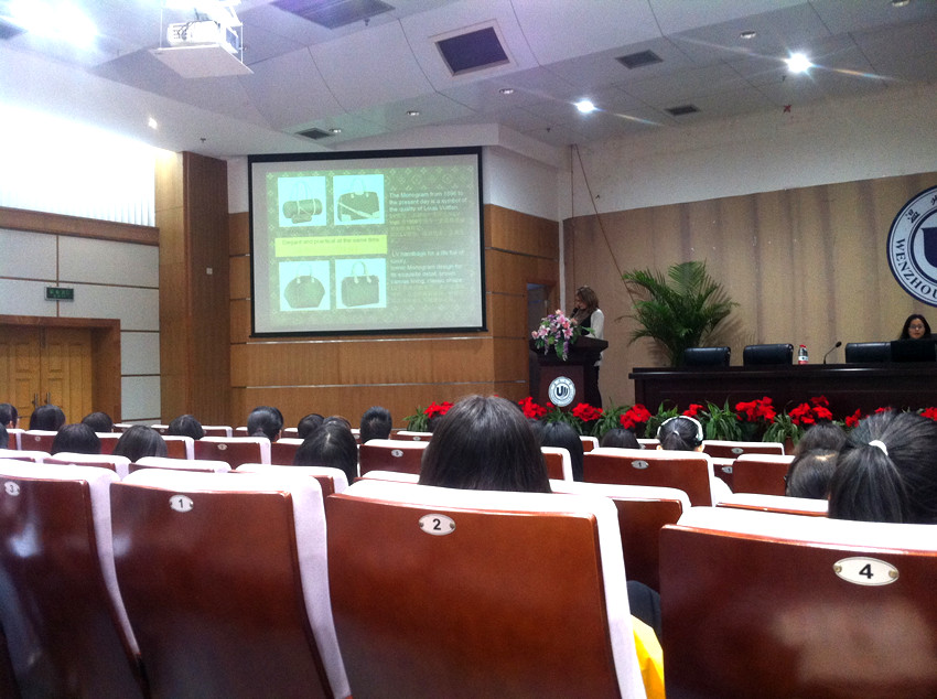 Charline女士在热烈的掌声中用英文进行演讲。讲座围绕法国的城市、美食、名人、品牌文化展开。享誉世界的品牌彰显了创建者的智慧与创意,考究的法国大餐透露着法式生活的优雅与精致,矗立在塞纳河畔的巴黎圣母院闪烁着法国人民的智慧,收藏着40万件艺术珍品的卢浮宫散发着其世界艺术殿堂的魅力。精彩的讲座让现场观众领略了法国的旖旎风光和浪漫情怀。