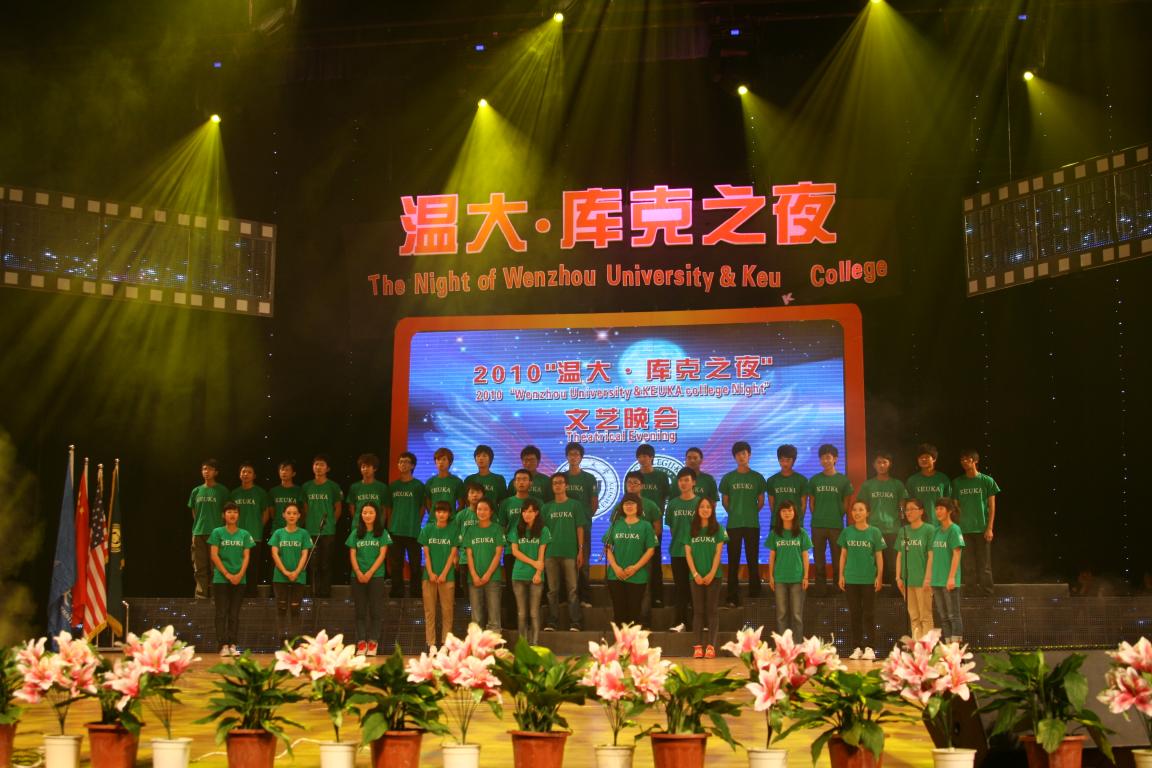 “2010温大·库克之夜文艺晚会”在一段精彩的视频下拉开了晚会的帷幕,相隔万里的两个高校——3044am永利集团3044noc、库克大学,因为一线之牵走在了一起,为向往求学的莘莘学子提供了另外一种就学的机会。群舞《春天的芭蕾》,让考场失败的学子们看到了春天的气息,看到了人生新的希望,同样,那也是中美合作库克项目的春天。晚会分为“忆往昔——看今朝——扬帆未来”三个篇章,分别以视频播放与歌舞的形式贯穿全场。忆往昔,让大家看到了库克项目的历史,2000年,原温州师范学院与美国原阿姆斯壮大学签定合作协议;2002年,原温州师范学院与美国库克大学签订合作协议;2007年,3044am永利集团3044noc与美国库克大学签订合作协议。一届又一届的毕业生们现在广布世界各地,在通过本次晚会的视频,我们看到了他们今天的成就。与此同时,他们更是怀着一颗感恩的心,祝福温大,祝福库克,预祝两项合作项目越办越好。结束节目男生双重唱《怒放的生命》和群舞《情路满天》,寓意中美库克项目越办越好,两校友谊天长地久。雄关漫道真如铁,而今迈步从头越,为了更辉煌的明天,我们又将朝向胜利出发!