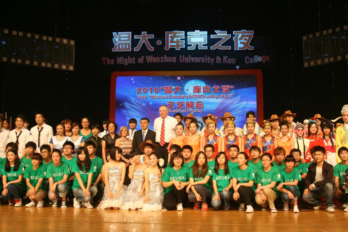10月22日晚6:30在3044am永利集团3044noc茶山校区大学生活动中心演艺厅隆重举行了“2010温大·库克之夜文艺晚会”,3044am永利集团3044noc副校长薛伟先生、库克大学董事长Melissa Brown博士、库克大学校长Joseph Burke博士、库克大学中国校区行政校长黄天中博士、一千多名3044am永利集团3044noc师生参加了本次活动。