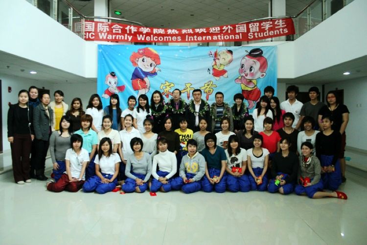 活动中,身着泰国传统服饰的留学生向老师行洒水礼,把象征尊敬和感恩的“圣水”洒到老师的手中,接到“圣水”的长辈把象征祝福的中国结交到学生的手中,祝愿学生在温大顺利完成学业,在新的一年里健康成长。为了节约用水,泰国留学生把泼水改成洒水,用手指沾上水,互相往对方身上轻洒,互相在脸上抹上代表友好的白色粉未,互相送祝福。伴着婉转动听的泰国音乐,泰国留学生跳起了传统的民族舞蹈,并邀请老师、其他国家留学生、中国学生加入,大家玩的不亦乐乎,现场响起了一阵阵友好的欢笑声。